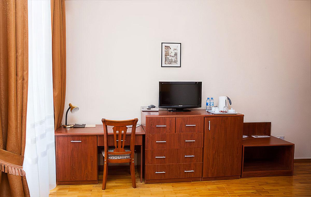 Небольшой отель в центре города на Площади Фонтанов. Ориентирован на путешественников, приехавших по делам: совсем рядом станция метро и автобусные остановки, удобно добраться до любой точки города. Есть небольшой конференц-зал на 20 человек. Гости, приехавшие с туристическими целями, также останутся довольны: все основные достопримечательности в пешей доступности.