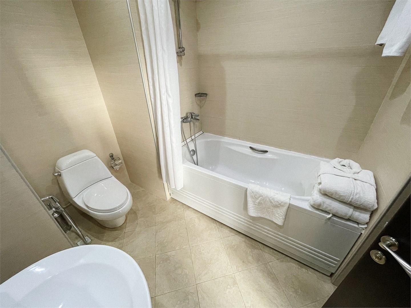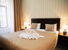 Балкон с красивым видом, неограниченное посещение СПА, мини-бар, мини-холодильник. Можно выбрать номер как с одной двуспальной кроватью, так и с двумя односпальными. Один ребёнок до 3-х лет может проживать без отельного места.