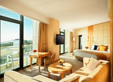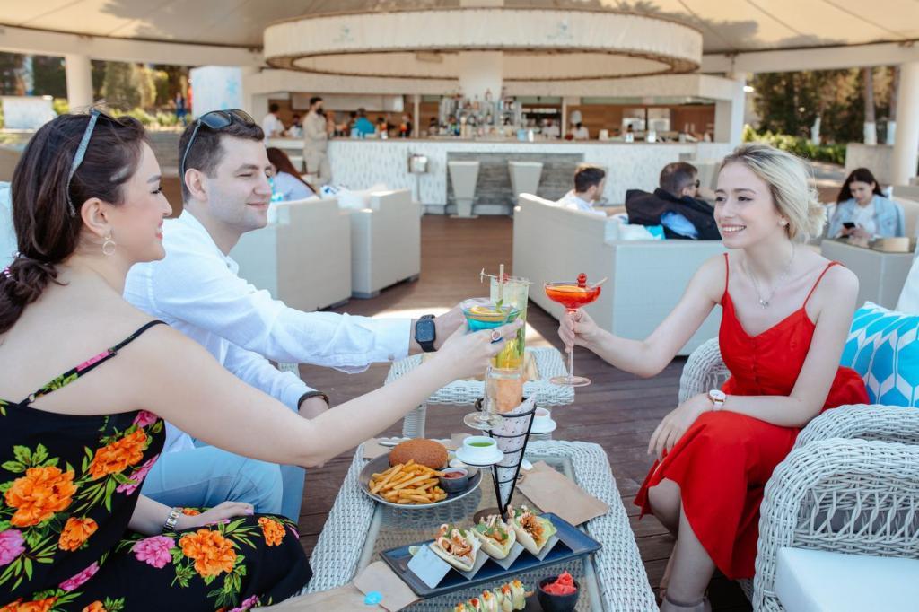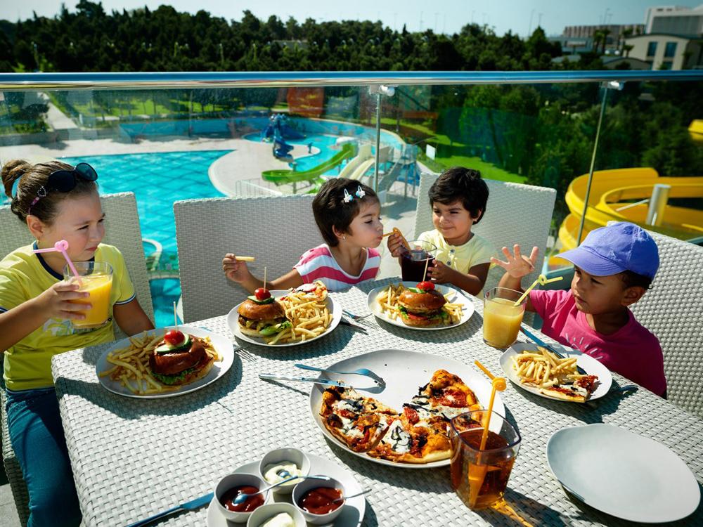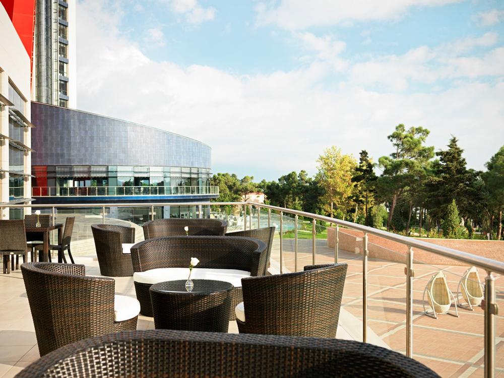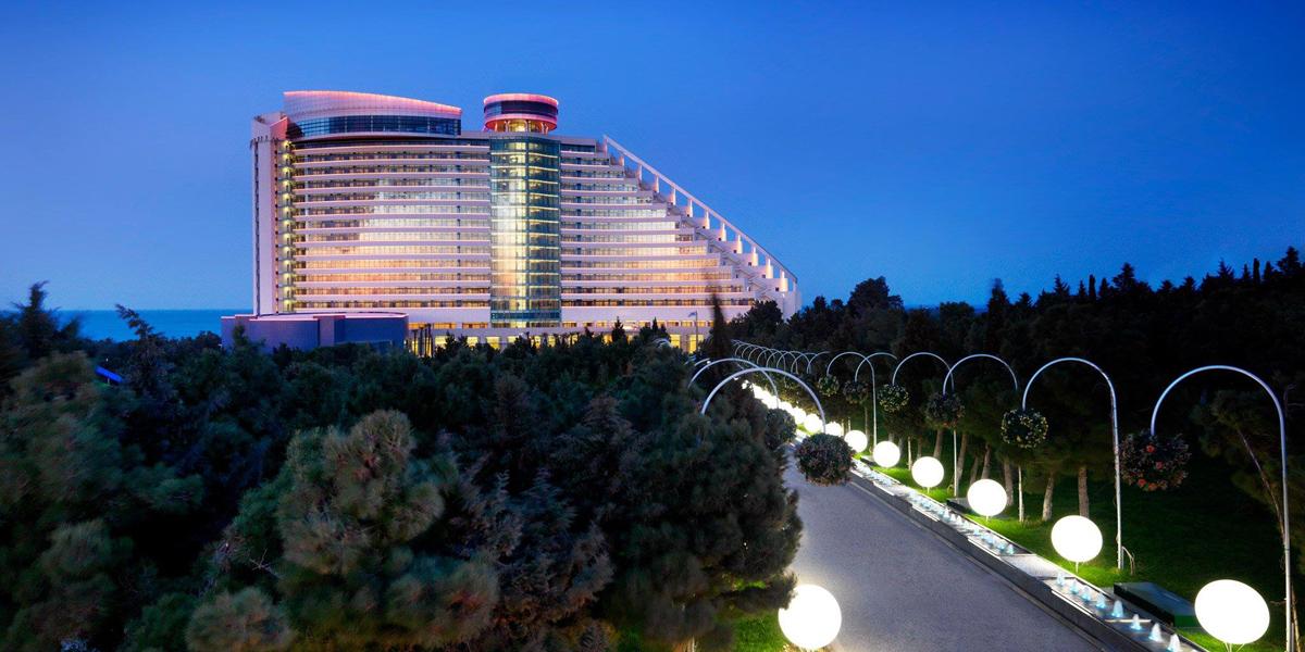 Современный курортный комплекс на берегу моря с бассейном и аквапарком. К услугам постояльцев просторные номера, ухоженный частный пляж, спа-салон с разнообразными процедурами, а также несколько ресторанов и баров, где можно попробовать традиционные азербайджанские блюда и насладиться великолепными закатами над Каспийским морем. Детям, несомненно, понравится прекрасный аквапарк с кафе рядом. В отеле разрешено проживание с питомцами, можно не беспокоиться о том, с кем оставить любимца на время отпуска, и отдохнуть в Bilgah Beach Hotel всей семьёй. |